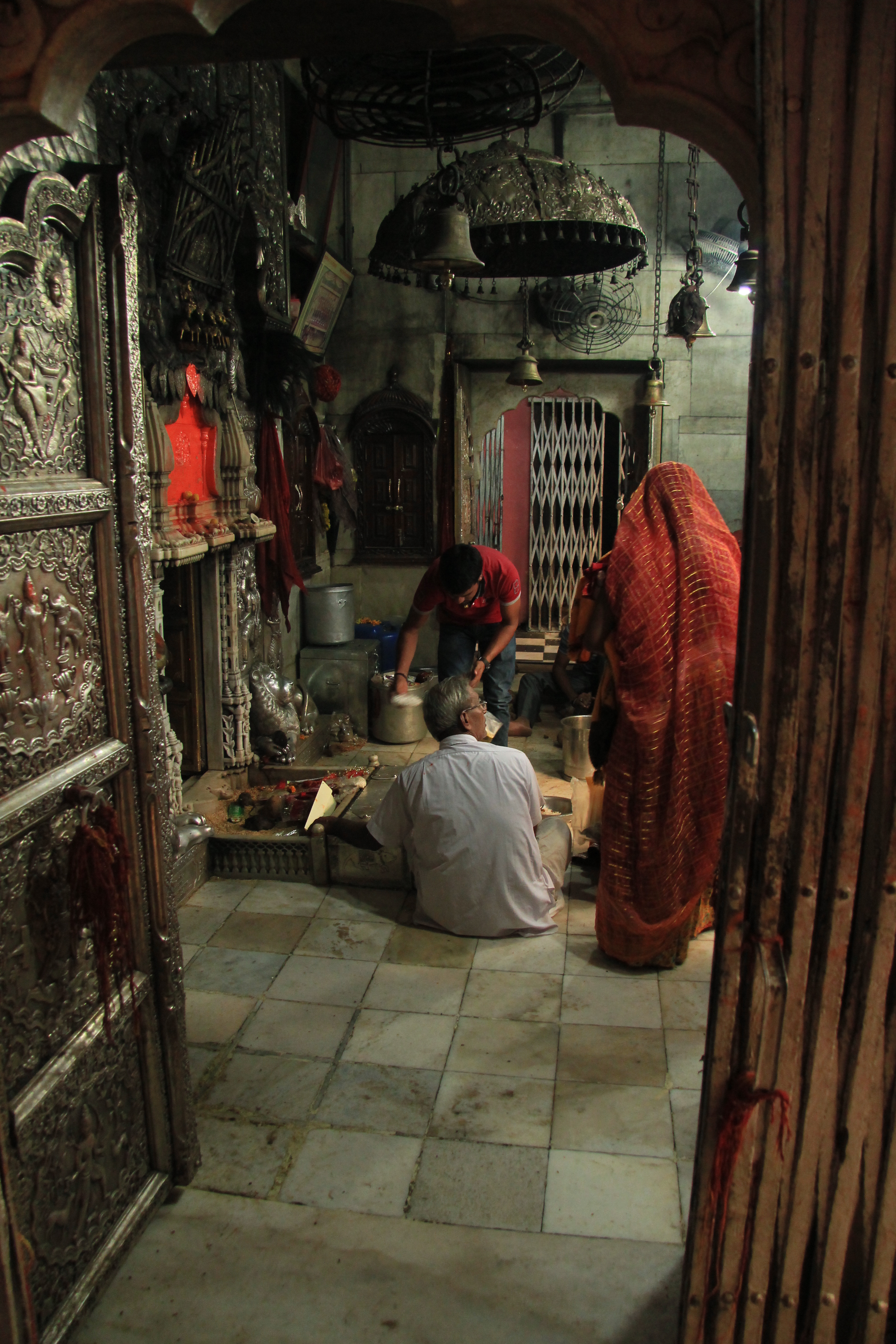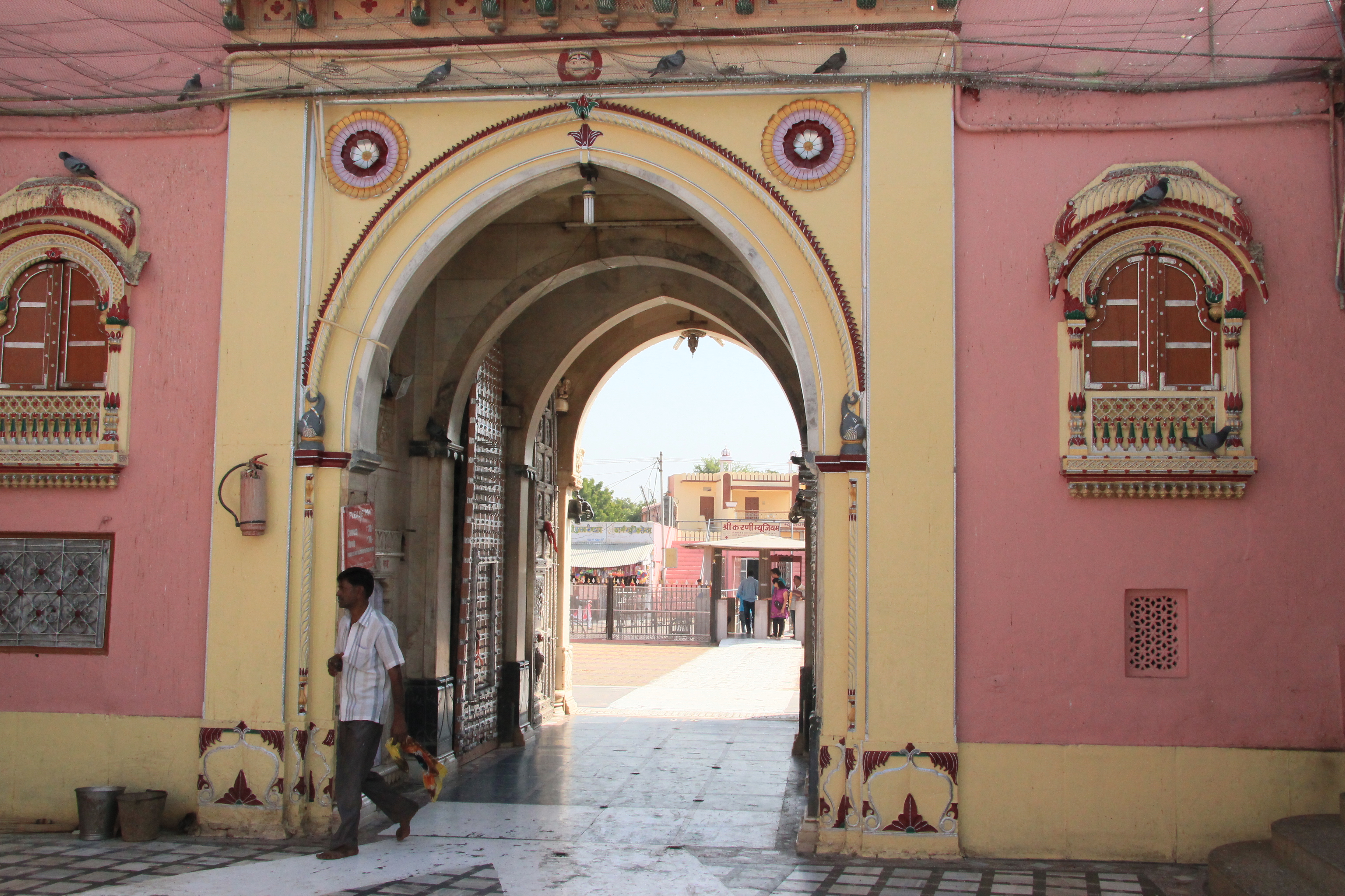 Reincarnation, a belief rooted among Hindus, is at the heart of the legend of Karni Mata. This temple dedicated to the goddess would house the reincarnation of those devotees in animal form. Before entering, nothing portends us what this marble facade will suggest. By following gestures of the pilgrims, I was able to grasp a little better to this cult of faith. It was with curiosity, and socks at my feet, that I entered into the rat temple.